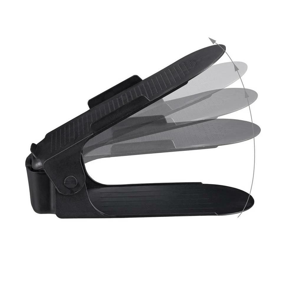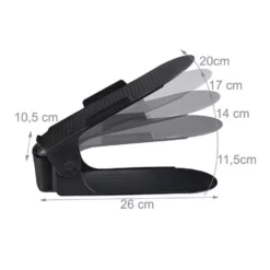 - Übersicht: Schwarze Schuhstapler lagern Schuhe paarweise u. zugänglich – Flache und hohe Damenschuhe