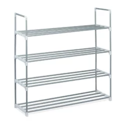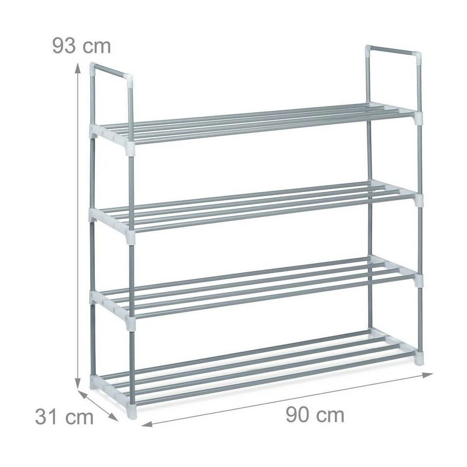 - Vielseitig: 2x silbernes Schuhregal mit 4 Ebenen – Ausreichend Platz für je 16 Paar Schuhe aller Art