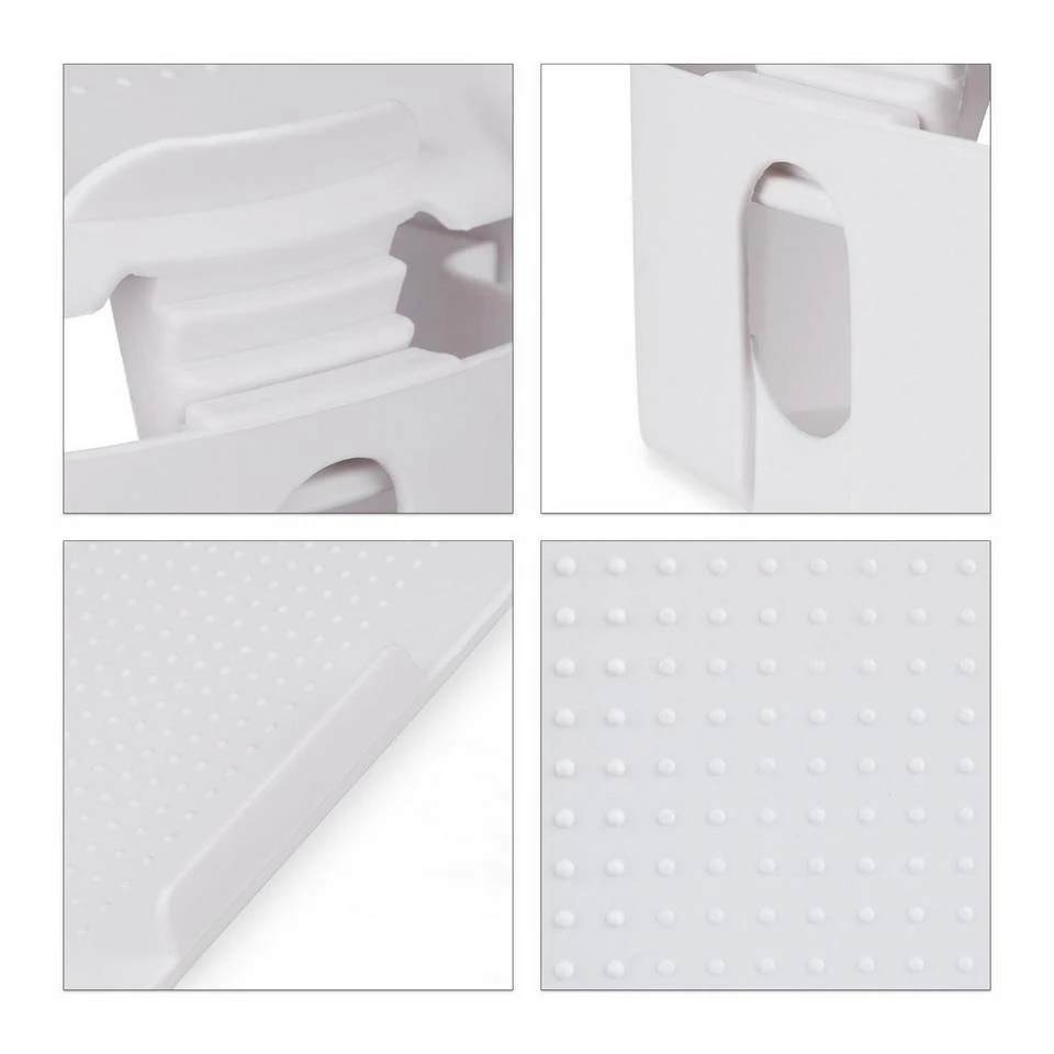 Platzsparende Schuhablagen für Ihren Kleiderschrank Im Eingangsbereich, Kleider- oder Schuhschrank sind diese Schuhstapler die idealen Ordnungshelfer. Sie verfügen über eine rutschfeste Ablagefläche & eignen sich für Schuhe bis zu Größe 39. Die Schuhablage aus Kunststoff verhindert dabei ein Verschmutzen von Boden oder anderer Schuhen. Die Schuhhalter sind im 80er Set erhältlich & dienen so besonders Paaren & Familien mit begrenzten Lagerungsmöglichkeiten. Dank der Verstellbarkeit eignen sich die Schuhorganizer neben flachen auch für hohe Schuhe.