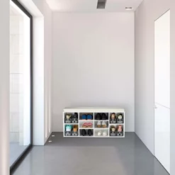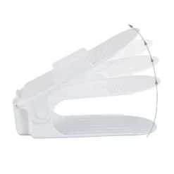 - Übersicht: Weiße Schuhstapler lagern Schuhe paarweise u. zugänglich – Flache und hohe Damenschuhe