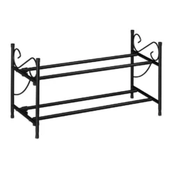 Ausziehbares Schuhregal in edlem Schwarz Mit dem erweiterbaren Schuhständer können Sie Ihre Schuhe, Sneaker oder Stiefel flexibel und platzsparend in Flur oder Diele lagern. Auf den zwei ausziehbaren Ebenen finden bis zu 12 Paar Schuhe einen Platz. Wenn Sie mehr Stauraum benötigen, können Sie einfach 2 Schuhgestelle übereinander stapeln. Das Metallschuhregal überzeugt mit seiner stabilen Konstruktion aus schwarzem Stahl und dem modernen, schicken Design.