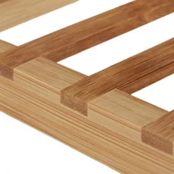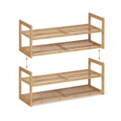 Erweiterbares Schuhgestell mit 2 Ebenen Sorgen Sie für einen aufgeräumten Eingangsbereich mit diesem modernen Bambus Schuhregal. Auf den 2 Etagen der Schuhaufbewahrung finden bis zu 6 Paar Ihrer Lieblingsstücke Platz. Somit haben Sie das passende Schuhwerk jederzeit griffbereit und übersichtlich aufbewahrt. Doch der Schuh Organizer kann mit einer weiteren Besonderheit überzeugen. Die Schuhablage ist mit einem zweiten Regal in der Höhe erweiterbar. Somit erzeugen ausgiebige Shopping-Touren keinen Platzmangel im Ankleidezimmer mehr.