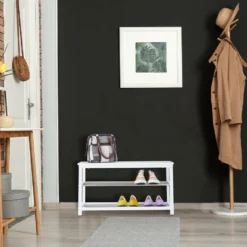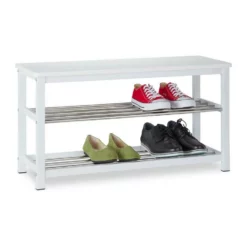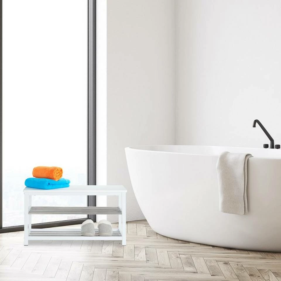- Vielseitig: Schuhablage mit zwei Ablagen – Auch als Sitzbank mit Platz für Handtücher im Badezimmer