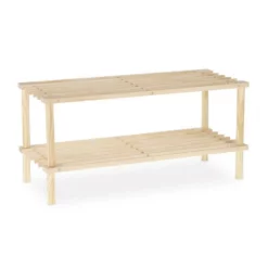 - Basics: Schuhständer aus natürlichem Kiefernholz – Abmessungen H x B x T: ca. 29,5 x 63 x 26 cm