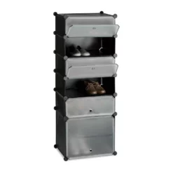 Schuhschrank mit 6 Fächern Der Besitz vieler Schuhe bringt vor allem in kleinen Wohnungen oft Platzprobleme mit sich. Dieses Schuhregal bietet die ideale Lösung und spendet Platz für mindestens 12 Paar. Durch die unterschiedlich hohen Fächer können auch Stiefel problemlos verstaut werden. Dank des praktischen Stecksystems kann das DIY- Regal blitzschnell und ohne zusätzliches Werkzeug aufgebaut werden. Dabei sind unterschiedliche Varianten möglich. Die Schuhablage ist in verschiedenen Farben erhältlich und kann sowohl als offenes Regalsystem als auch als geschlossener Schuhschrank genutzt werden.