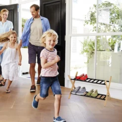 - Stabil: Standfeste Konstruktion des Schuhgestells aus Bambus und Stahl – Rutschfeste Füße aus Gummi