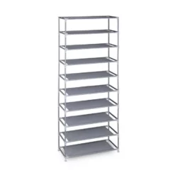 - Mit Stoffbezug: Große Schuhablage mit 10 Ebenen aus robustem Vliesstoff – Grau mit hellerem Vlies