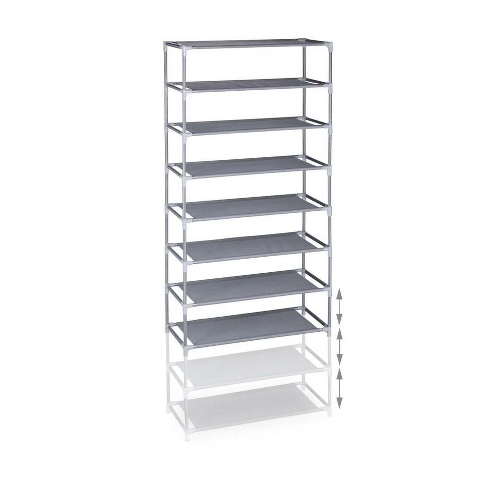 XXL Stoff Schuhregal für 30 Paar Schuhe Ob Sandaletten, Turnschuhe oder Ballerinas – oft hat man mehr Schuhe als gedacht. Leider ist der Platz in Wohnungen oft begrenzt. Durch den hohen Schuhständer haben Sie gleich 10 Ebenen auf den Sie all Ihre Schuhe problemlos unterbekommen. Auch mit Kindern oder in einem Mehrpersonenhaushalt bietet sich das XXL Schuhregal an. Das offene Design sorgt dafür, dass Sie alle Schuhe griffbereit haben und schnell finden. Das variable Steckregal lässt sich einfach aufbauen und die Ebenen auch verringern.