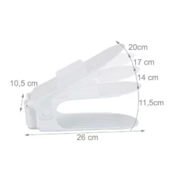 Platzsparende Schuhablagen für Ihren Kleiderschrank Im Eingangsbereich, Kleider- oder Schuhschrank sind diese Schuhstapler die idealen Ordnungshelfer. Sie verfügen über eine rutschfeste Ablagefläche & eignen sich für Schuhe bis zu Größe 39. Die Schuhablage aus Kunststoff verhindert dabei ein Verschmutzen von Boden oder anderer Schuhen. Die Schuhhalter sind im 8er Set erhältlich & dienen so besonders Paaren & Familien mit begrenzten Lagerungsmöglichkeiten. Dank der Verstellbarkeit eignen sich die Schuhorganizer neben flachen auch für hohe Schuhe.