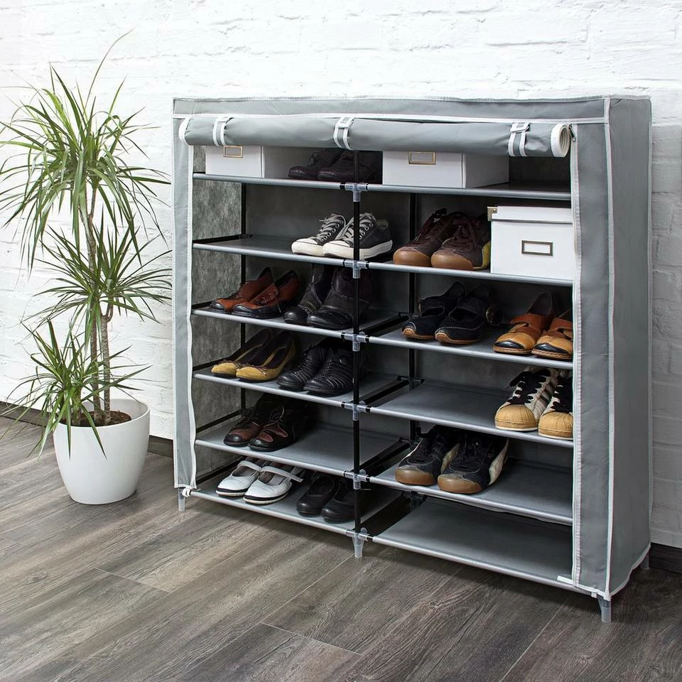 - Details: Einfarbiges Schuhregal aus Stoff passt in jede Einrichtung – HBT ca. 108,5 x 114 x 30,5 cm