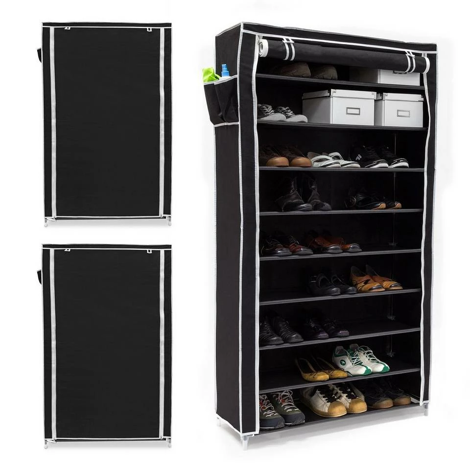 - Vielseitig: 3 x schwarzer Faltschrank mit je 9 Ebenen – Platz für je bis zu 45 Paar Schuhe aller Art