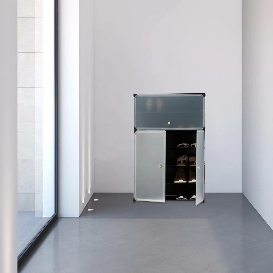 - Viel Stauraum: Der Schuhschrank aus Kunststoff bietet mit 6 Fächern Platz für mind. 18 Paar Schuhe