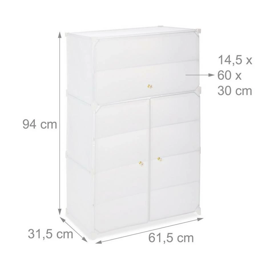 XL Schuhschrank aus Kunststoff Das Plastik-Schuhregal ist schmal, platzsparend und leicht. Sie können es in Flur oder Schlafzimmer leicht aufstellen und auch bewegen. Die 6 Ebenen bieten viel Platz für Ihre Schuhe. Durch die transparenten Türen haben Sie auch immer einen guten Blick auf den Inhalt Ihrer Schuhkommode. 3 der 6 Fächer lassen sich Einhängen und können bei Bedarf auch schnell entfernt werden. Dies ist gerade für hohe Schuhe ideal. Haben Sie mal verschmutzte oder nasse Schuhe, müssen Sie sich keine Sorgen machen. Die Kunststoffoberfläche lässt sich prima mit einem feuchten Tuch reinigen. Hinweis: Stecksystem kann erweitert werden, ist aber nicht flexibel umbaubar.