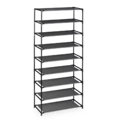 Schuhschrank aus Stoff In dem praktischen Schuhschrank mit 8 Fächern können Sie ungefähr 24 Paar Schuhe ordentlich und übersichtlich verstauen. Der Stoffschrank benötigt nur eine geringe Stellfläche und ist damit ideal bei wenig Platz. Nutzen Sie den Schuhständer im Flur, Treppenhaus oder Ankleidezimmer. Auch für den Keller oder Dachboden ist das Schuhgestell ideal, da der Bezug aus Stoff die Schuhe vor Staub und Schmutz schützt. Mit dem cleveren Stecksystem ist der Schuheschrank im Handumdrehen aufgebaut.