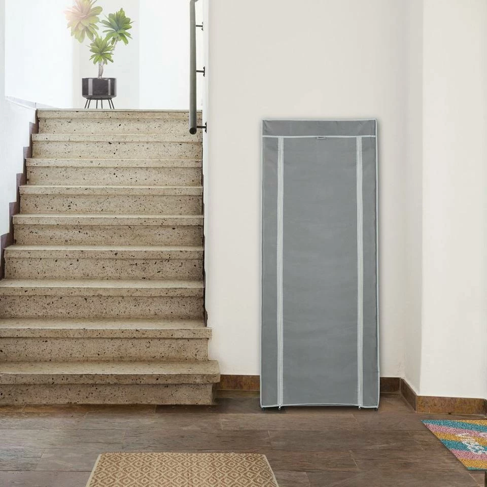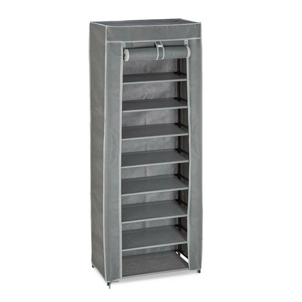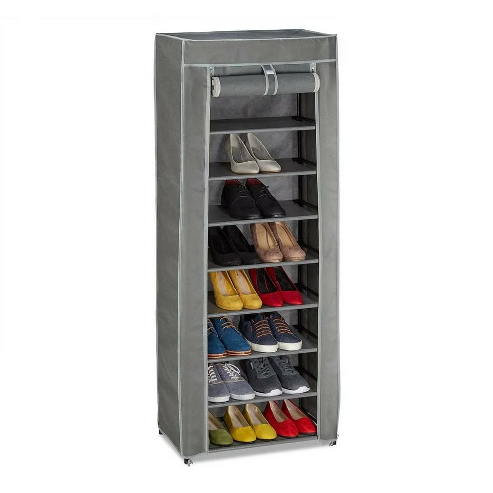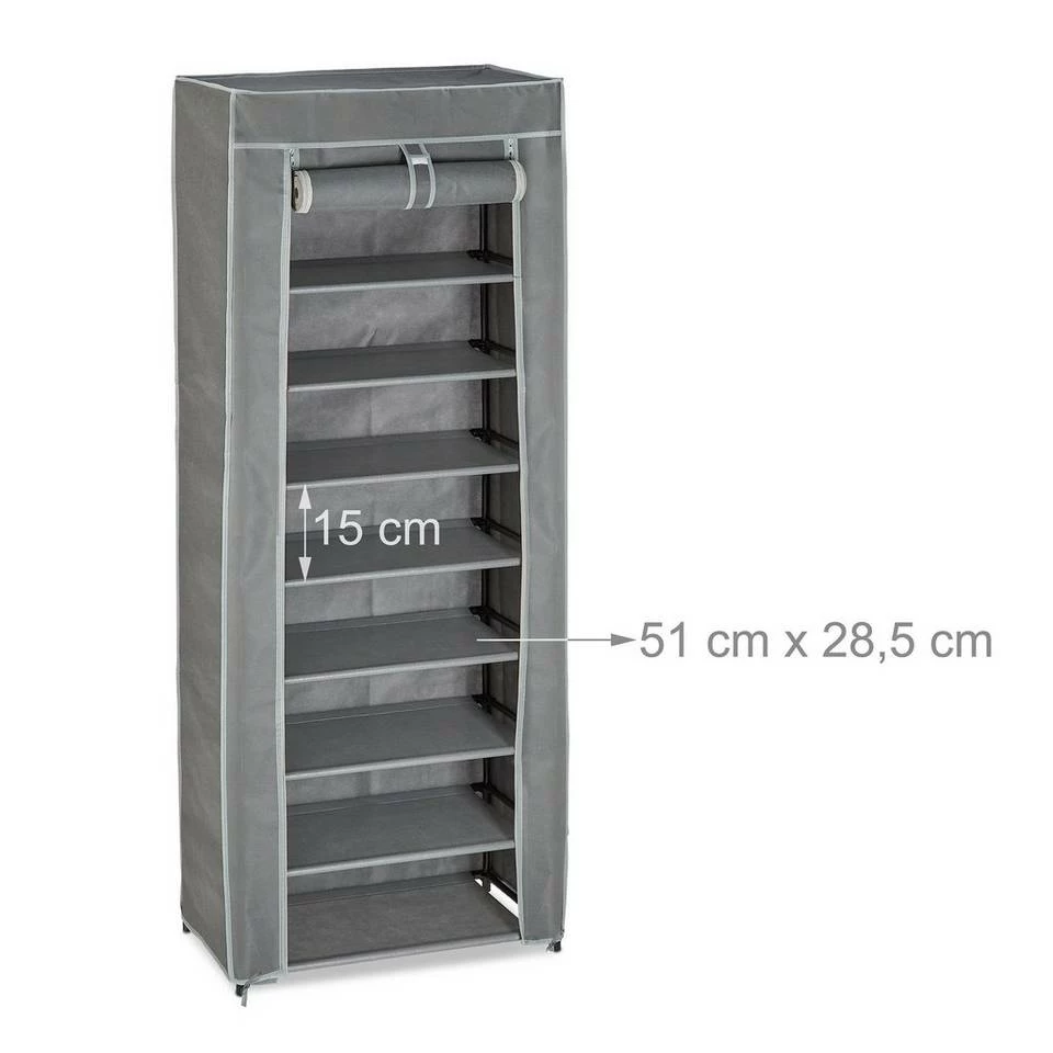 Faltschrank für 27 Paar Schuhe Verstauen Sie alle Ihre Schuhe in diesem großen Schuhständer aus Stoff. Die Schuhablage bietet in 9 Fächern Platz für ungefähr 27 Paar Schuhe. Der praktische Bezug aus Stoff schützt Ihre Fußbekleidung vor Staub, kann bei Bedarf aber auch einfach abgenommen werden, um den geschlossenen Schuhschrank in ein offenes Schuhregal zu verwandeln. Das Gestell des Schuhorganizers besteht aus einem cleveren Stecksystem und lässt sich schnell und einfach aufbauen.