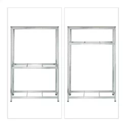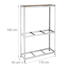 - Basics: Autoregal aus Stahl und MDF – H x B x T: ca. 180 x 118 x 40 cm – Trägt ca. 265 kg pro Ebene
