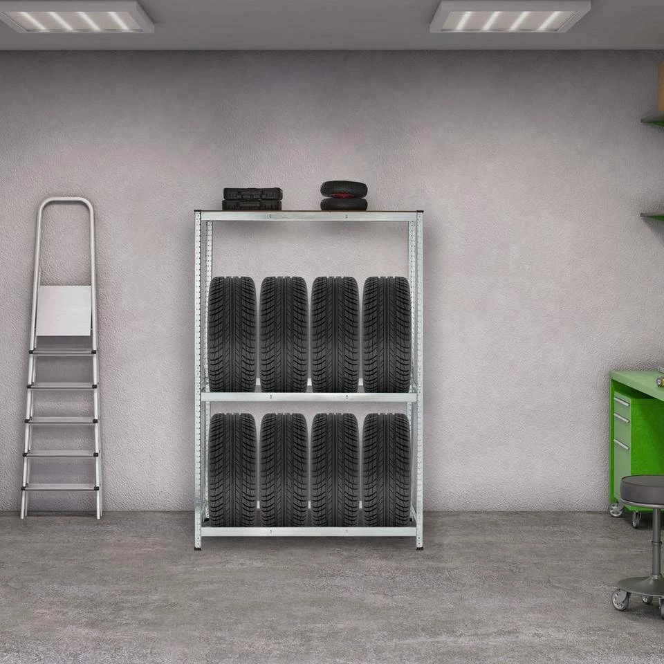- Stauraum: Reifenregal besitzt 3 Ablagen – Für bis zu 8 Reifen – Obere Ablage für Werkzeug und mehr