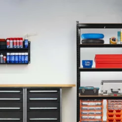 - Stauraum: Lagerregal aus Stahl und MDF für Garage, Werkstatt, Keller – Platz für Werkzeug, Getränke