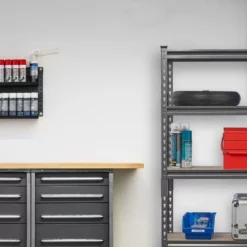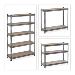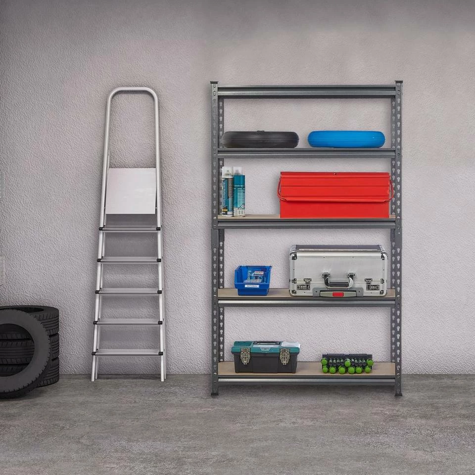- Stauraum: Lagerregal aus Stahl und MDF für Garage, Werkstatt, Keller – Platz für Werkzeug, Getränke