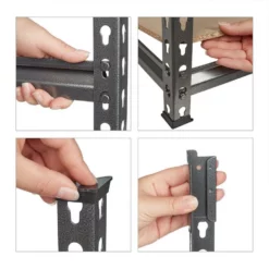 Abstellregal für Speisekammer, Lagerraum oder Werkstatt Mit dem Hochlastregal holen Sie sich einen echten Allrounder nach Hause. Die 5 Böden lassen sich in der Höhe individuell anordnen und bei Bedarf machen Sie dank einfachem Steckmechanismus aus einem Standregal im Nu 2 Werkbänke. So vielseitig wie die Aufbaumöglichkeiten, sind auch die Einsatzmöglichkeiten des Steckregals. So kann es als Lagerregal, Kellerregal, Werkstattregal oder Vorratsregal zum Einsatz kommen. Lagern Sie im Regal Reifen, Werkzeuge, haltbare Lebensmittel und vieles Mehr. Tipp: Das praktische Stecksystem benötigt keinerlei Schrauben, daher funktioniert der Aufbau schnell und einfach. Sie benötigen leidglich einen Gummihammer. Bauen Sie das Regal dennoch mit Handschuhen auf.
