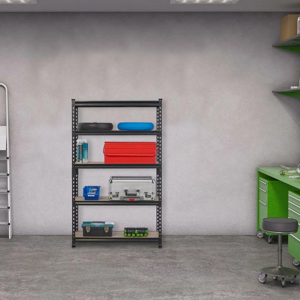 - Stauraum: Lagerregal aus Stahl und MDF für Garage, Werkstatt, Keller – Platz für Werkzeug, Getränke