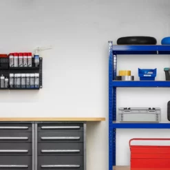 - Stauraum: Lagerregal aus Metall und MDF für Garage, Werkstatt, Keller – Platz für Werkzeug, Getränke