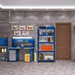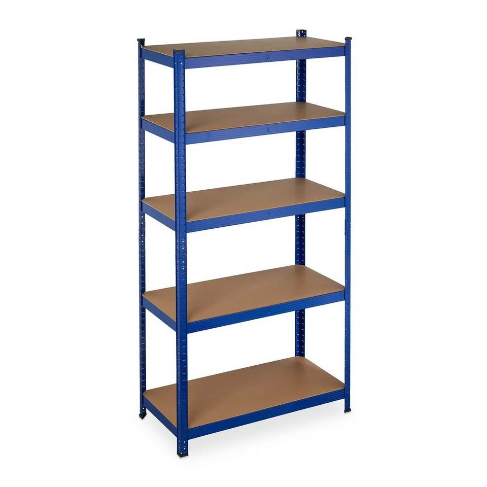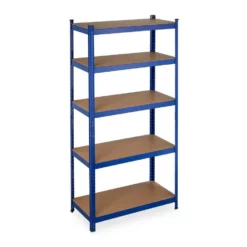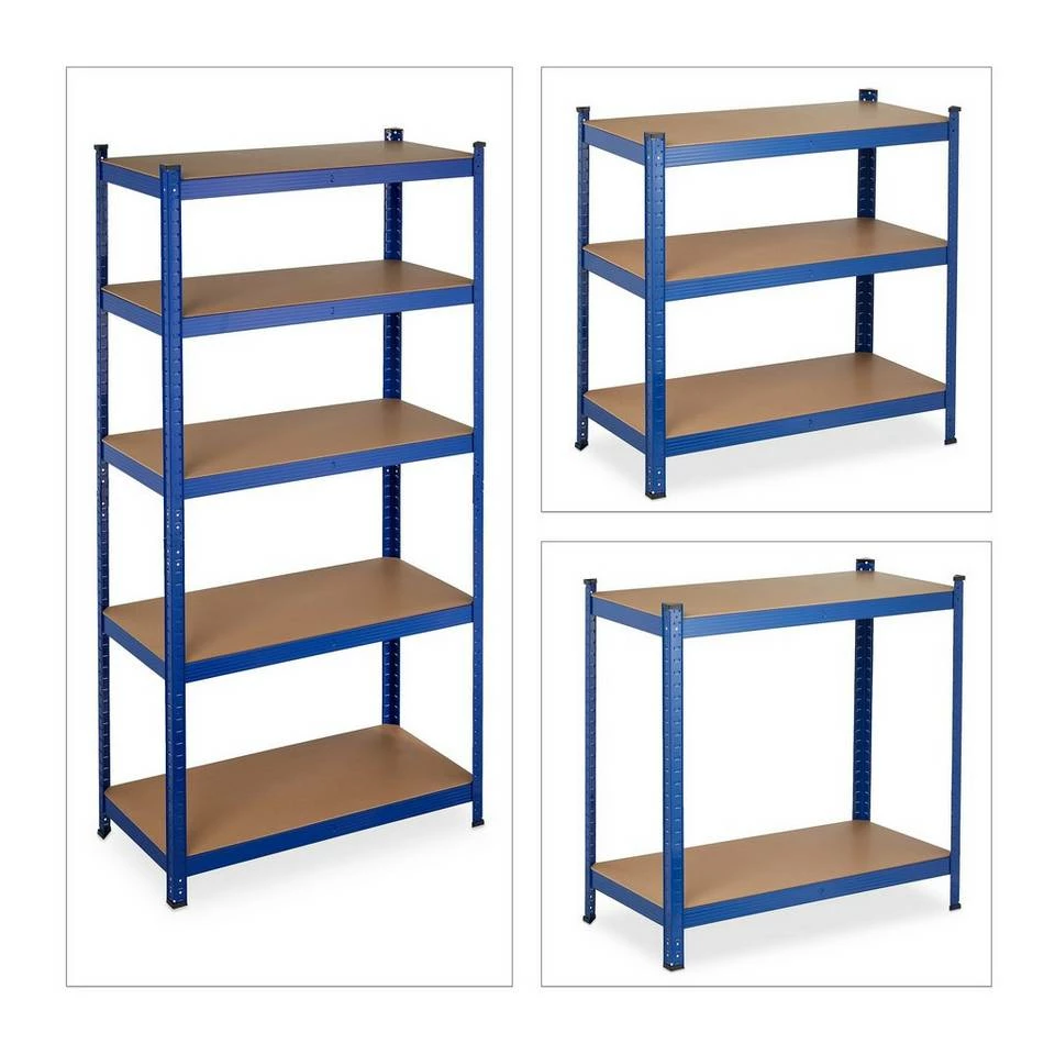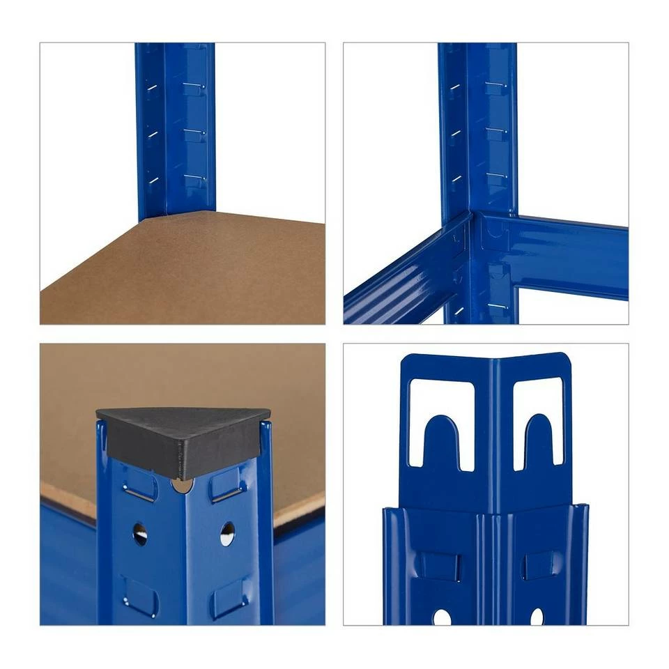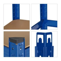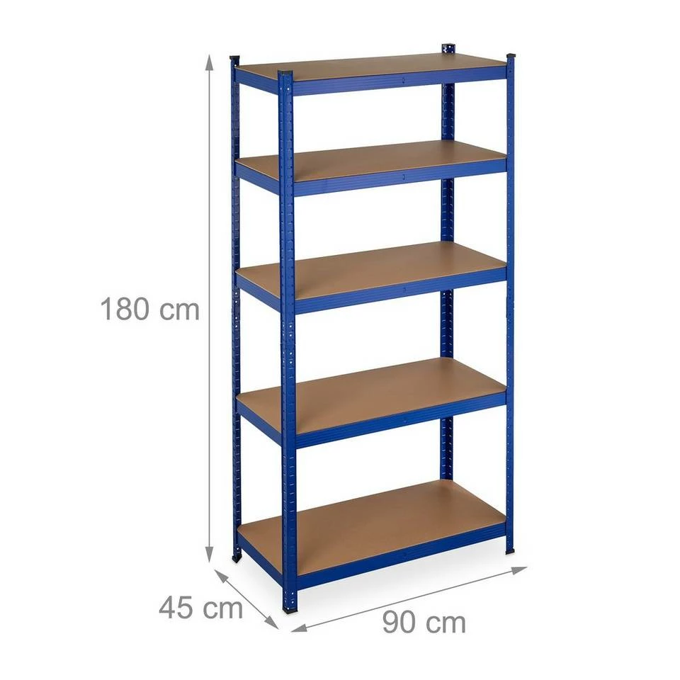 - Basics: Blaues Regal – Traglast gesamt: ca. 875 kg – Je Ebene: ca. 175 kg – HxBxT: ca. 180x90x45 cm