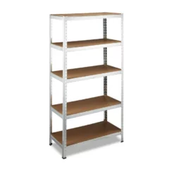 - Besonders tragfähig: Belastung je Boden: ca. 265 kg – Gesamtlast: ca. 1325 kg – Das Steckregal nimmt wenig Platz in Anspruch – Gesamt HBT: ca. 180 x 90 x 45 cm