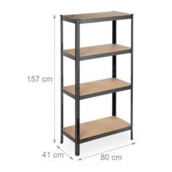 - Details: Schwarzes Regal für ca. 280 kg Traglast – Je Ebene: ca. 70 kg – HxBxT: ca. 157 x 80 x 41 cm