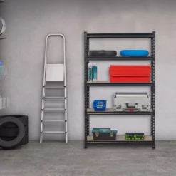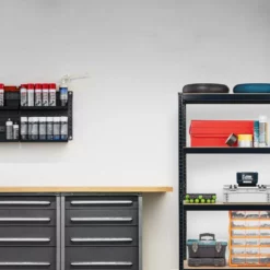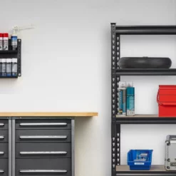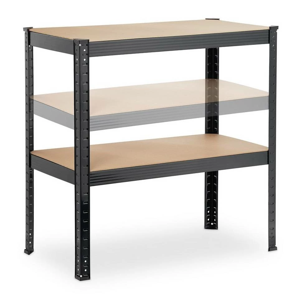 - Stauraum: Lagerregal aus Stahl und MDF für Garage, Werkstatt, Keller – Platz für Werkzeug, Getränke