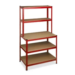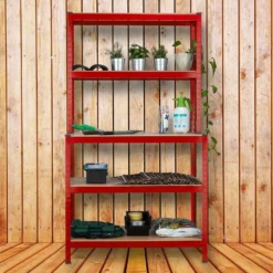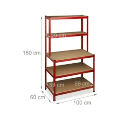 - Basics: Rotes Regal mit 5 Ablagen aus Metall und MDF – Traglast: ca. 900 kg – HBT: ca. 180x100x60 cm