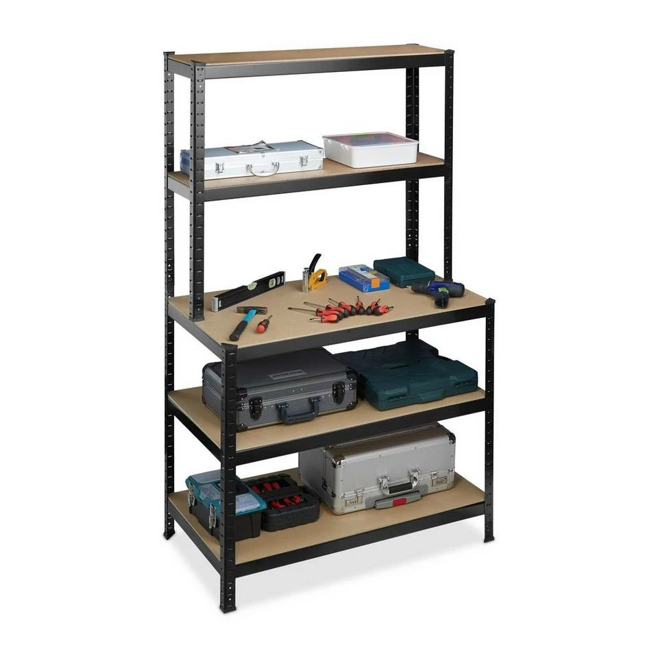 - Basics: Schwarzes Regal mit 5 Ablagen aus Metall u. MDF – Traglast: ca. 900 kg – HBT: ca. 180x100x60 cm