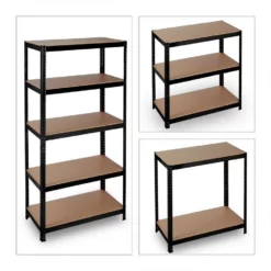 - Basics: Schwarzes Regal – Traglast gesamt: ca. 875 kg – Je Ebene: ca. 175 kg – HBT: ca. 180 x 90 x 45 cm