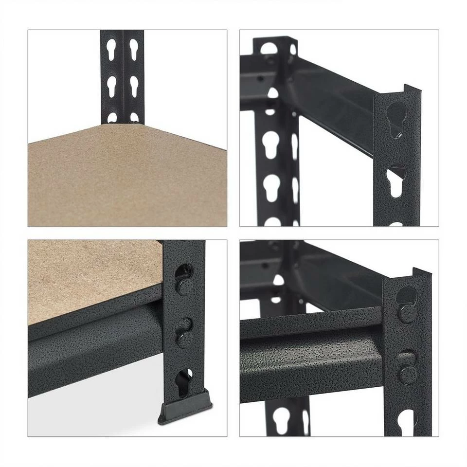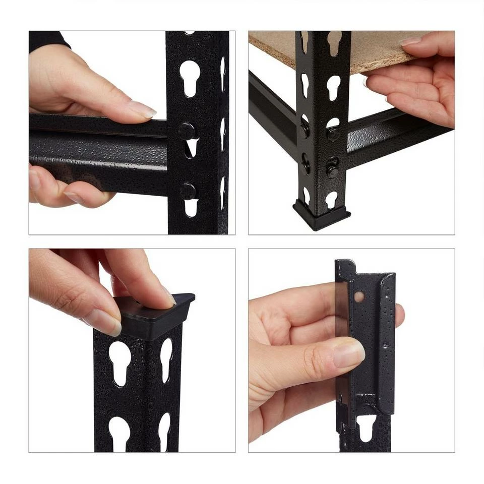 Massives Lagerregal zu Stecken Verstauen Sie Reifen, Werkzeuge, Lebensmittel und weitere schwere Gegenstände in diesem Steckregal. Das belastbare Regal aus Stahl und 5 MDF-Ablagen kann im Keller, der Speisekammer oder Garage genutzt werden. Dabei sind die Böden nach Belieben in der Höhe einstellbar. Bei Bedarf können Sie das Hochregal teilen und als praktische Werkbank verwenden. Das robuste Metallregal wird dank Stecksystem ohne Schrauben und Bohren im Handumdrehen aufgebaut. Tipp: Das praktische Stecksystem benötigt keinerlei Schrauben, daher funktioniert der Aufbau schnell und einfach. Eventuell benötigen Sie einen Gummihammer. Bauen Sie das Regal mit Handschuhen auf.