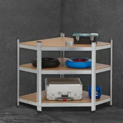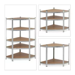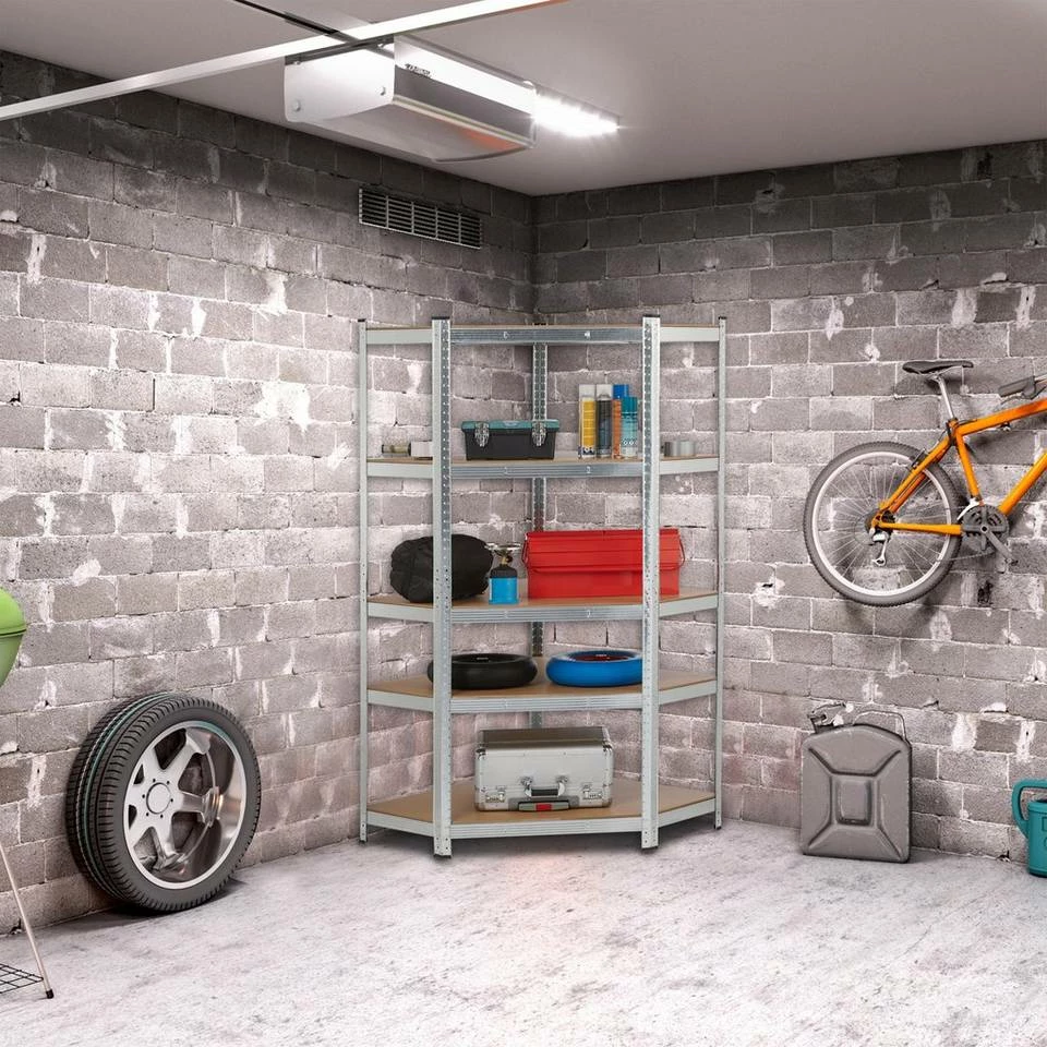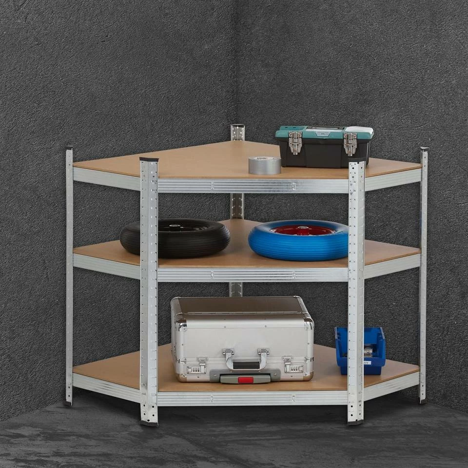 - Stauraum: Ecklagerregal aus Stahl und MDF für Garage, Werkstatt, Keller – Für Werkzeug, Vorräte uvm.