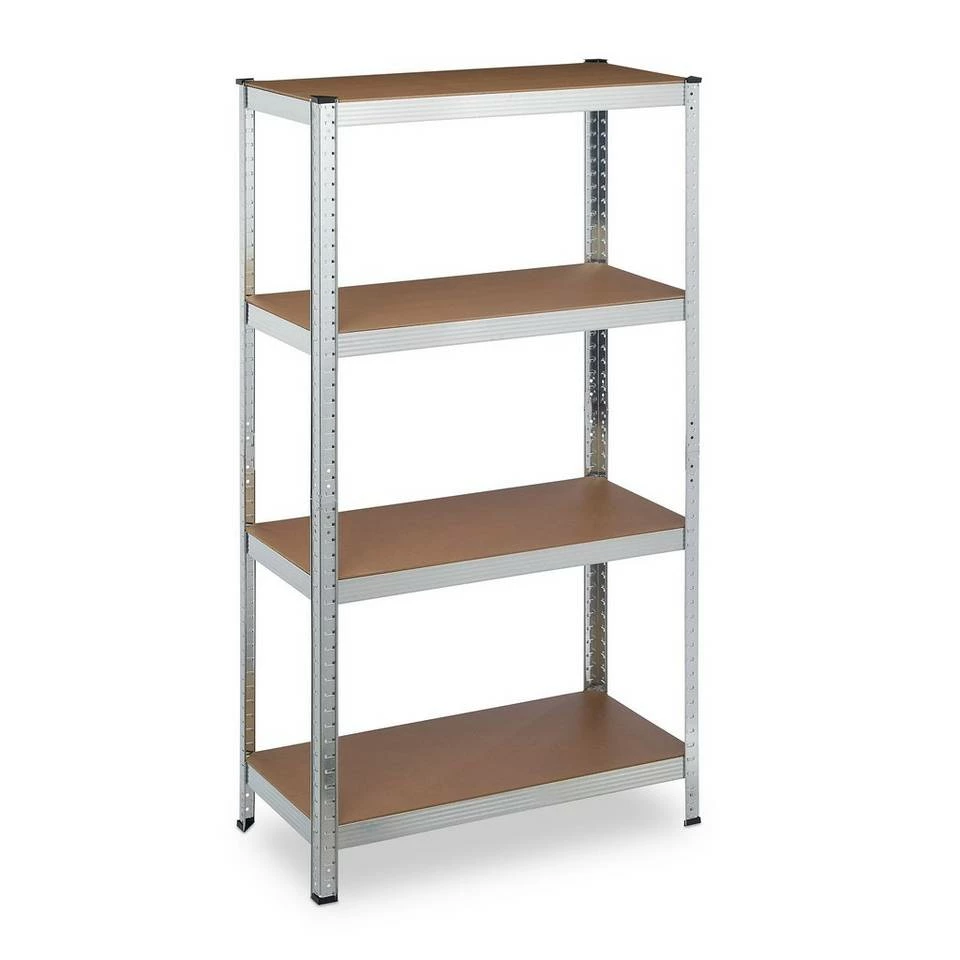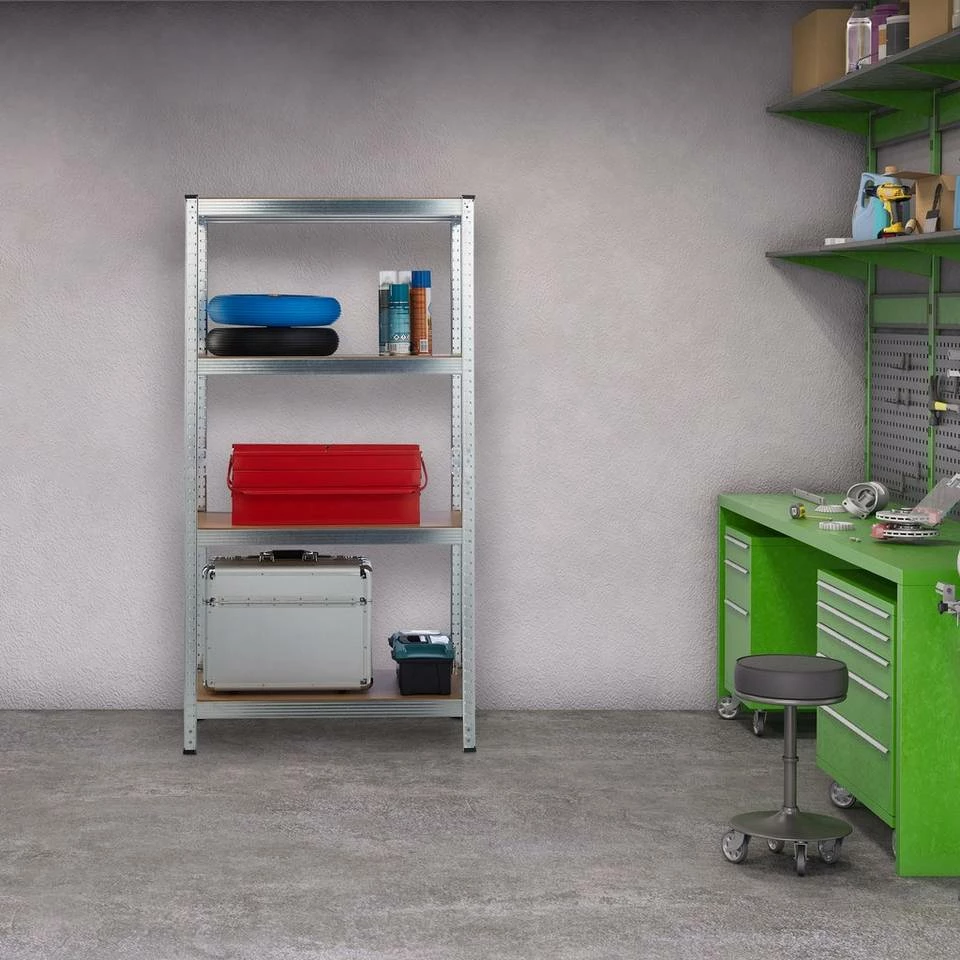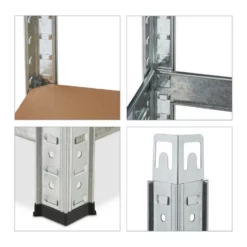 Verzinktes Metall Steckregal für den Keller Ihr Keller oder die Vorratskammer haben mal wieder ein Make-Over nötig? Dann ist dieses robuste Haushaltsregal die ideale Wahl. Das belastbare Schwerlast Stecksystem verfügt über 4 Böden, die Sie nach eigenem Bedarf anordnen können. Sortieren Sie schwere Werkzeuge, Farbeimer, Kabel oder aber auch Lebensmittelvorräte sowie Getränke in das Lastregal ein, um für Übersicht und Ordnung zu sorgen. Dabei kommt das Metallregal ganz ohne Bohren aus. Es ist durch Zusammenstecken im Handumdrehen aufgebaut. Tipp: Das praktische Stecksystem benötigt keinerlei Schrauben, daher funktioniert der Aufbau schnell und einfach. Sie benötigen einen Gummihammer. Bauen Sie das Regal mit Handschuhen auf. Unter Umständen brauchen Sie einen Schraubenzieher, um die Zinken leicht vor zu biegen.