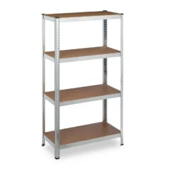 - Stauraum: Lagerregal aus Stahl und MDF für Garage, Keller, Vorratsraum – Platz für Werkzeug, Getränke