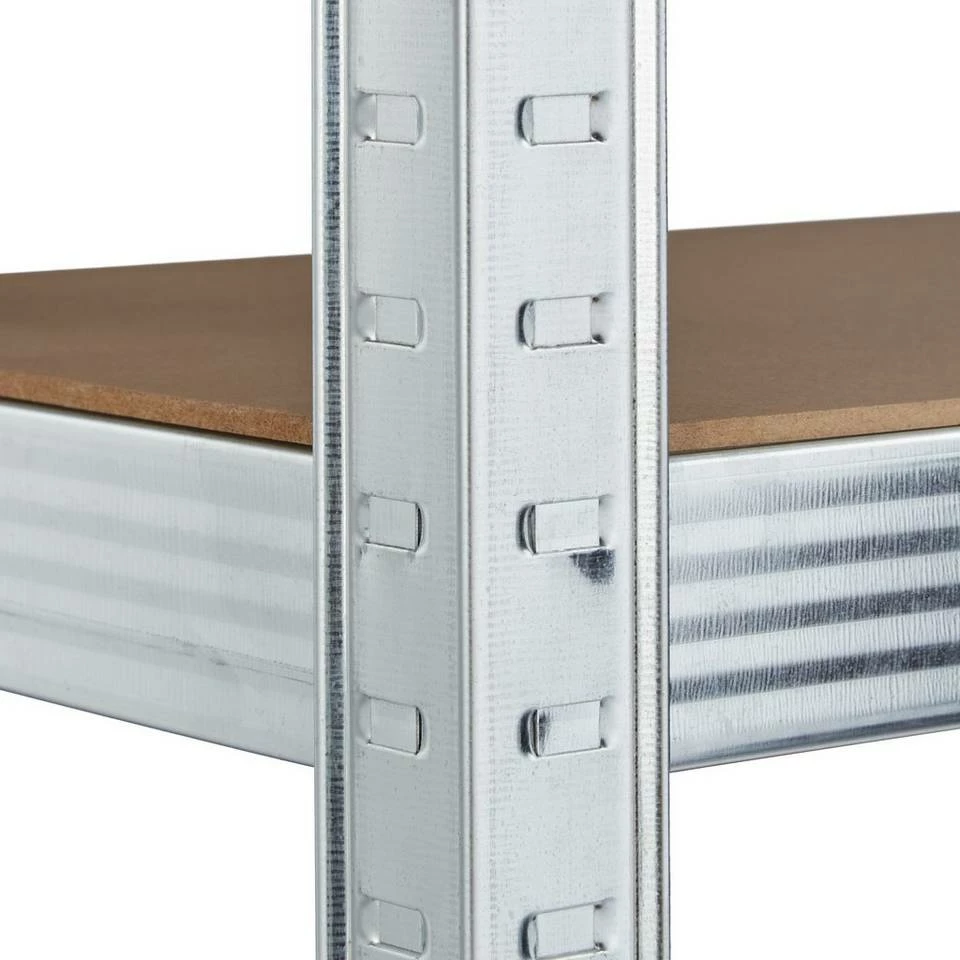 Verzinktes Hochlastregal mit 5 Böden Nutzen Sie dieses Garagenregal zur Lagerung schwerer & sperriger Gegenstände. Auf den 5 stabilen Böden lassen sich neben Werkzeug, Kabeln und Reinigungsmitteln ebenso auch Lebensmittelvorräte, Getränkekisten oder Aktenordner aufbewahren. Dank der frei einstellbaren Ebenen des Kellerregals, können Sie die Höhe des jeweiligen Fachs individuell bestimmen. Zusätzlich zu hoher Tragkraft & Stabilität überzeugt das Werkstatt-Regalsystem ebenso mit seinem schnellen & einfachen Aufbau zum Stecken. Tipp: Das praktische Stecksystem benötigt keinerlei Schrauben, daher funktioniert der Aufbau schnell und einfach. Sie benötigen einen Gummihammer. Bauen Sie das Regal mit Handschuhen auf. Unter Umständen brauchen Sie einen Schraubenzieher, um die Zinken leicht vor zu biegen.