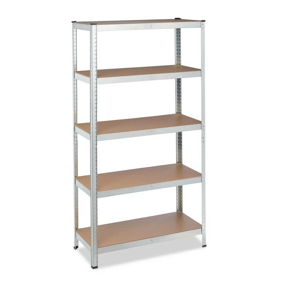 Verzinktes Kellerregal mit 5 Fachböden In Lagerräumen, wie Keller, Garage oder Abstellkammer sollte stets Ordnung herrschen. Mit diesem großen Werkstattregal sorgen Sie für Übersicht und können zugleich schwere Geräte sicher verstauen. Auf den 5 Ablagen des Regals können Werkzeuge, Maschinen, Reinigungszubehör und vieles mehr aufbewahrt werden. Die Größe der Gegenstände spielt dabei keine Rolle, da Sie die Höhe der Ebenen selbst bestimmen können. Das Mehrzweckregal wird durch Zusammenstecken aufgebaut & ist somit im Nu einsatzbereit. Tipp: Das praktische Stecksystem benötigt keinerlei Schrauben, daher funktioniert der Aufbau schnell und einfach. Sie benötigen einen Gummihammer. Bauen Sie das Regal mit Handschuhen auf. Unter Umständen brauchen Sie einen Schraubenzieher, um die Zinken leicht vor zu biegen.