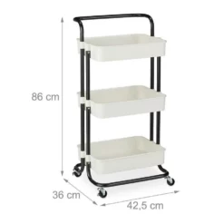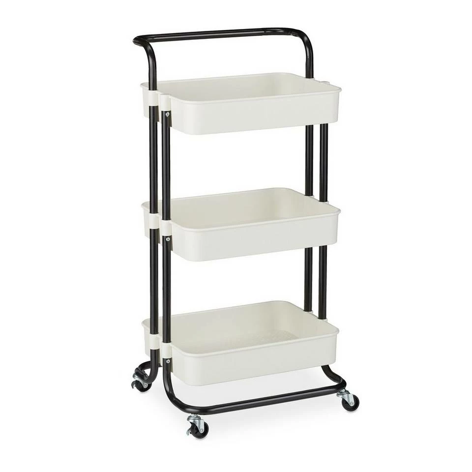 - 3 Etagen: Schwarz-Weißer Rollwagen aus Metall mit 3 Kunststoff-Ablagen – Praktischer Helfer Zuhause