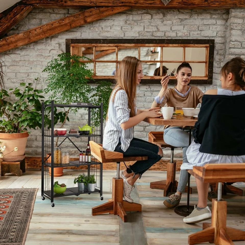Klappbarer Küchenrollwagen mit 4 Ebenen Der Küchenwagen ist ein mobiler Ordnungshelfer für Ihr Zuhause. Das Klappregal verfügt über 4 Rollen, sodass Sie es dorthin schieben können, wo es gerade gebraucht wird. Der Regalwagen eignet sich hervorragend als zusätzliche Ablagefläche für Vorratsdosen, Flaschen und mehr in der Küche. Wenn Sie Gäste empfangen, macht das Rollregal als Servierwagen, mit dem Sie Speisen und Getränke stilvoll an den Tisch bringen, eine gute Figur. Der Aufbewahrungswagen eignet sich besonders für kleine Küchen, da er bei Nichtgebrauch platzsparend zusammengeklappt und verstaut werden kann.