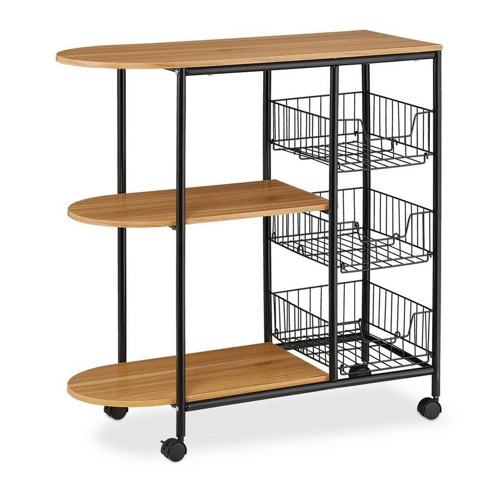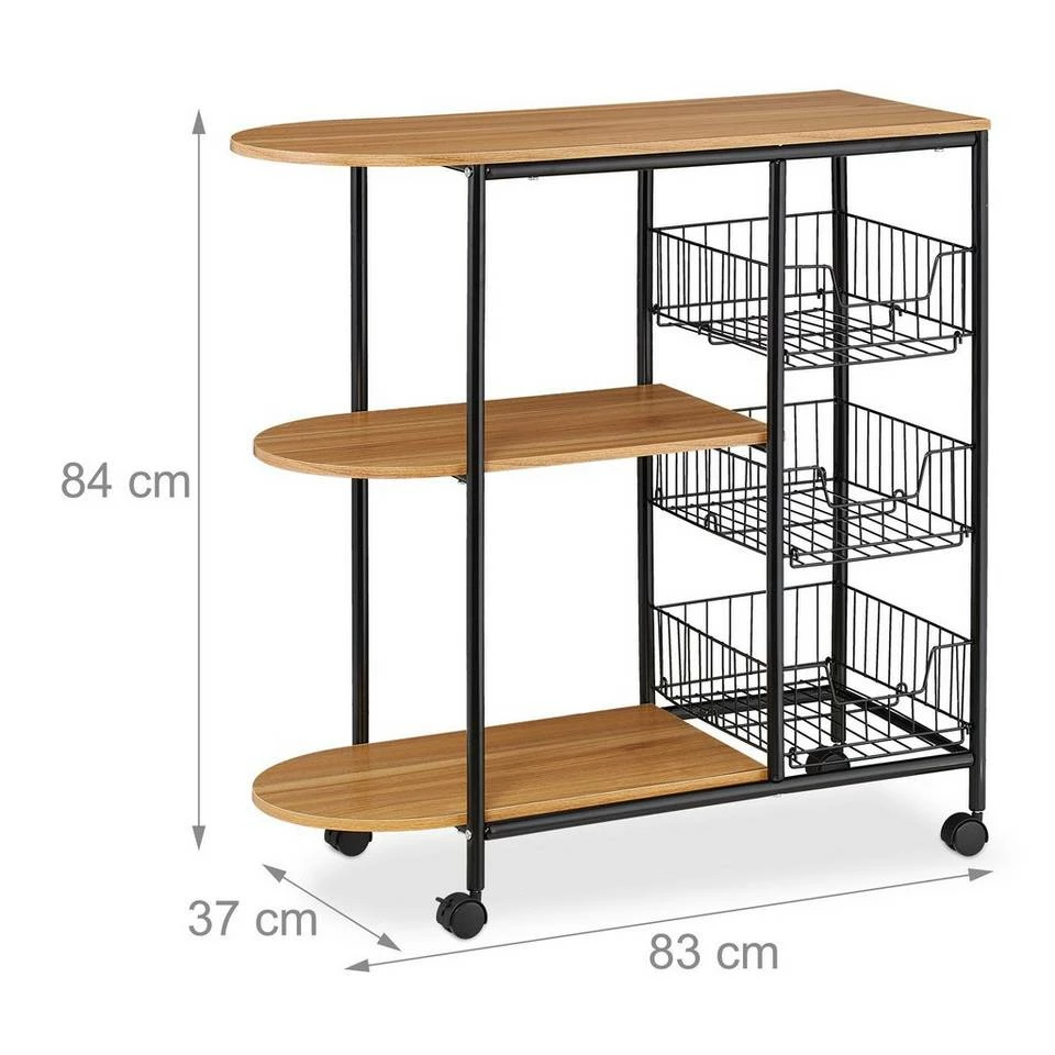 - Stauraum: Küchenwagen mit 3 Ablagen und 3 Körben für Gläser, Obst, Geschirr, Küchenutensilien uvm.