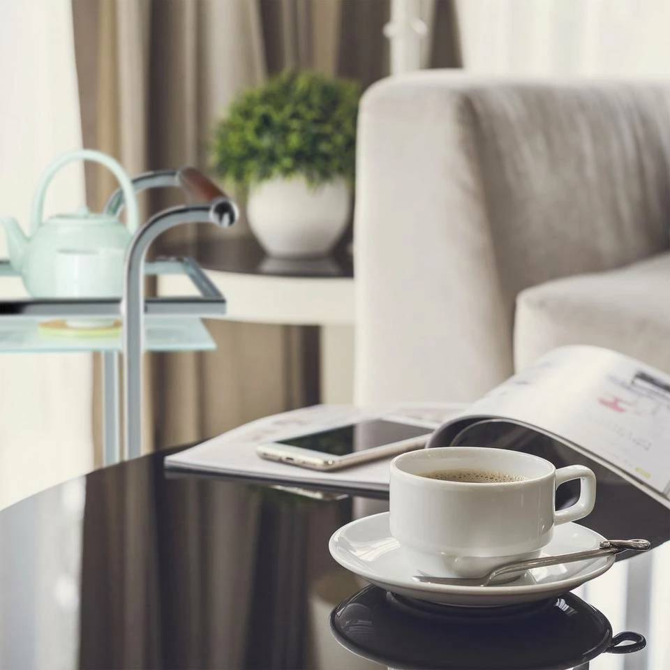 - Deluxe: Die schwarzen Räder des Teewagens sind besonders schmal und lassen sich geschmeidig rollen