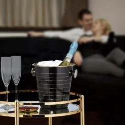 - Praktisch: Die obere Ablage des Getränkewagens sorgt mit Ihrem Rand für einen sicheren Transport