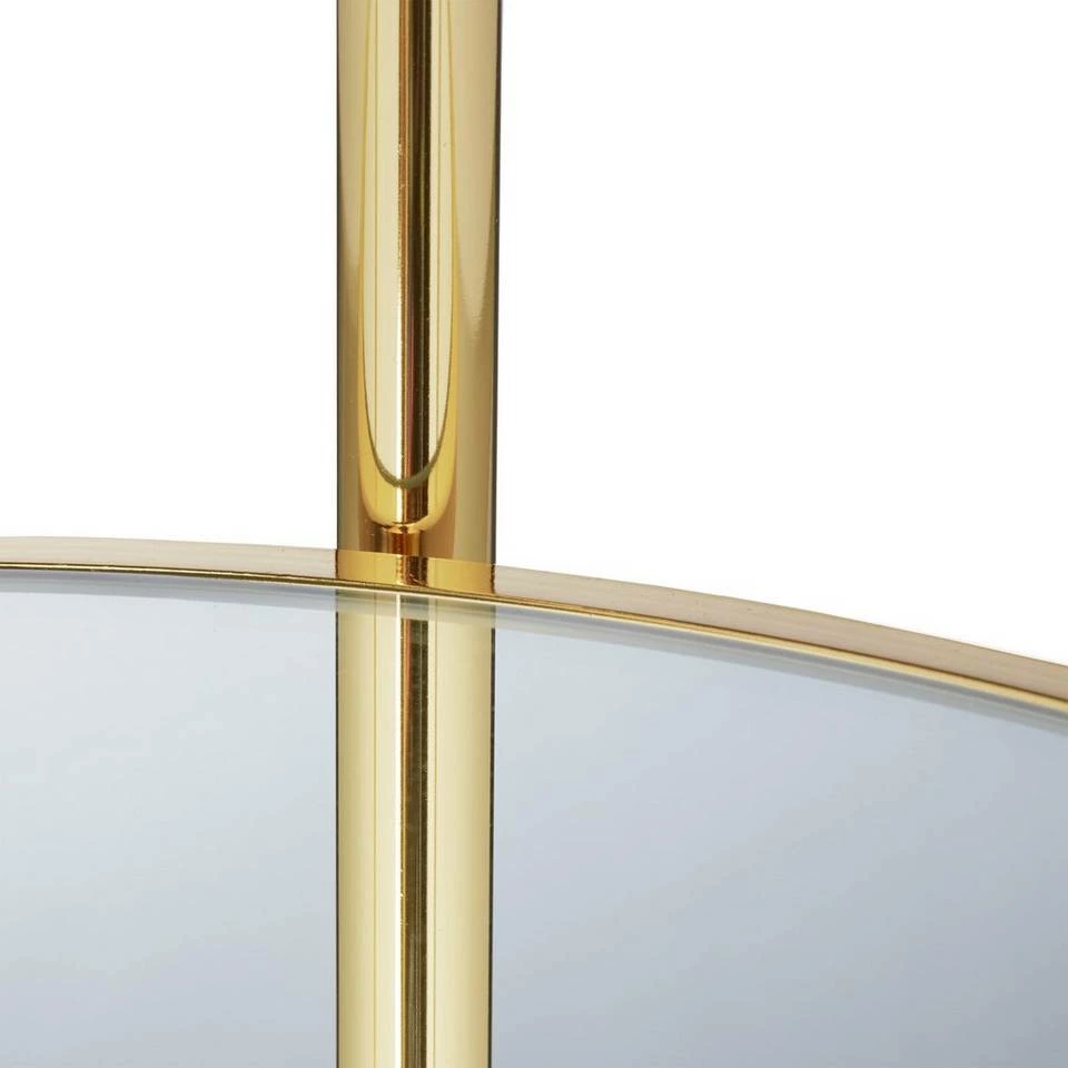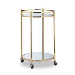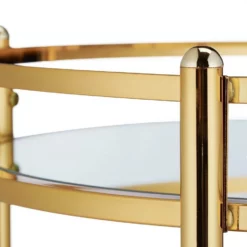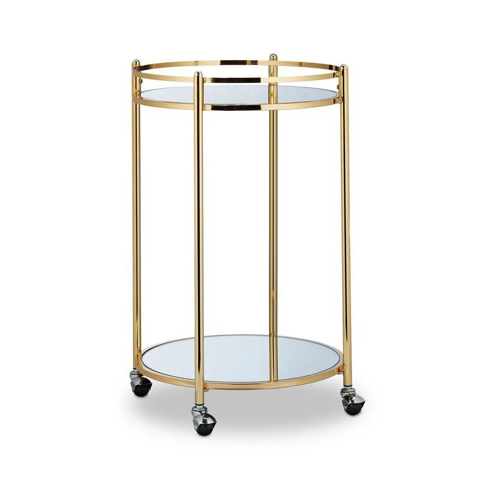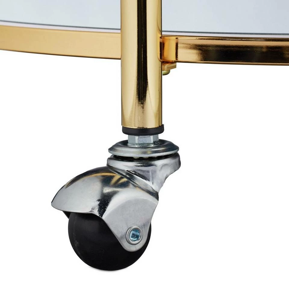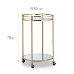 - Design: Runder Küchenwagen mit elegantem Stahlgestell in Gold-Optik und verspiegelten Glasablagen