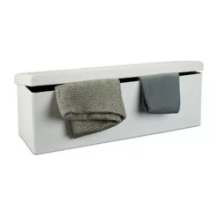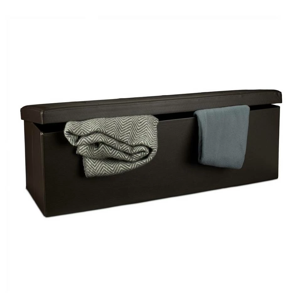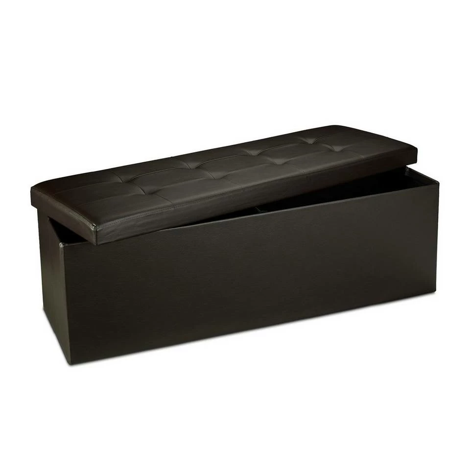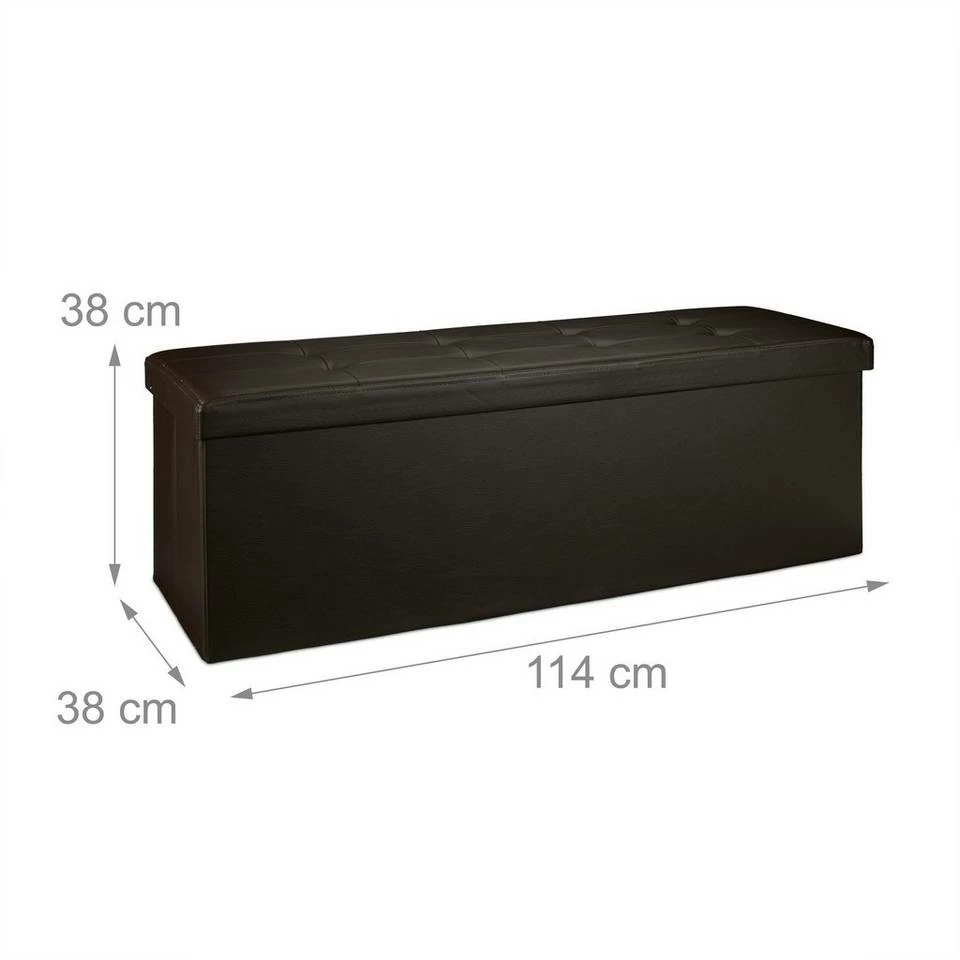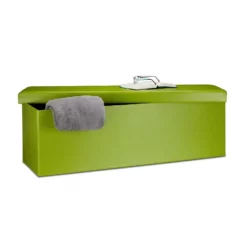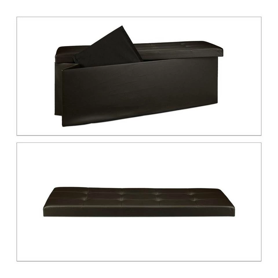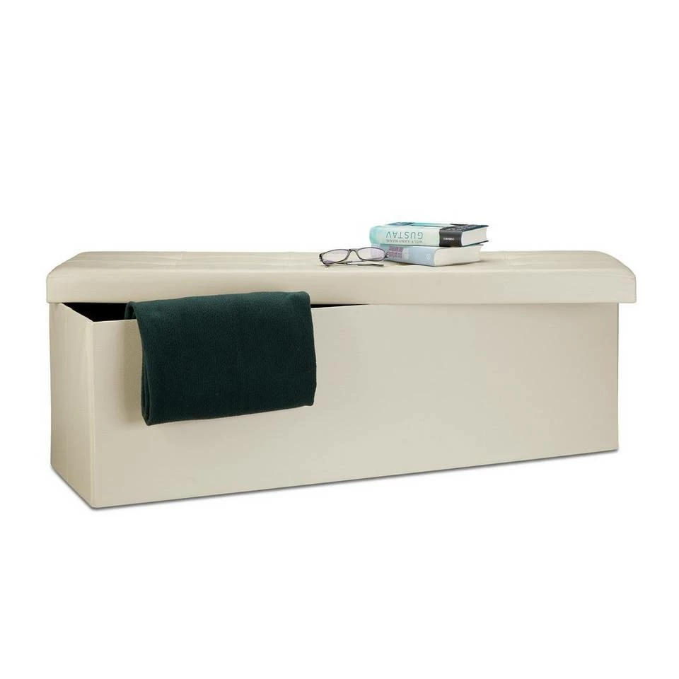Sitzbank und Aufbewahrungsbox in Einem Verstauen Sie Decken, Wäsche uvm. im großzügigen Stauraum der Sitzbank. Die mitgelieferte Trennwand teilt Ihnen die Aufbewahrungsbox zum Sortieren in 2 Fächer. Das Kunstleder samt weichem Polster auf der Sitzfläche verleiht dem länglichen Sitzhocker eine edle Optik, die hervorragend ins Wohn-, Schlaf- oder auch Badezimmer passt. Sie benötigen Platz? Dann falten Sie die Sitztruhe einfach mit wenigen Handgriffen zusammen und lagern Sie die Sitzbank platzsparend in Ihrer Wohnung. Wählen Sie aus 7 Farben und bestellen Sie sich Ihre faltbare Sitzbank.