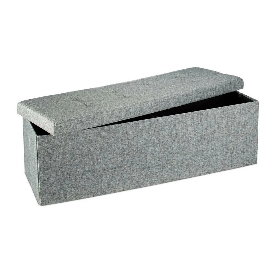 Sitzbank zum Aufklappen und Zusammenfalten Die hochwertige Sitzbank aus Leinen ist mit ihrem Stauraum die ideale Aufbewahrungsbox für Kissen, Zeitschriften, Spielzeug uvm. Sollten Sie spontan Platz benötigen, können Sie die Sitztruhe auch schnell und einfach zusammenfalten und raumsparend wegstellen. Der angenehme und widerstandsfähige Leinenbezug des Sitzhockers sieht natürlich aus und bewahrt Sie zudem vor Fusseln und Flusen. Wählen Sie Ihre neue Sitzbank aus verschiedenen Farben und entdecken Sie hier im Shop weitere Stauraumhelden!