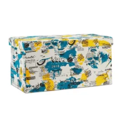 - Trendig: Weiße Aufbewahrungstruhe mit schwarzer Schrift – Mondänes Design mit gelben und petrolfarbenen Akzente – Für Fans von Frankreich