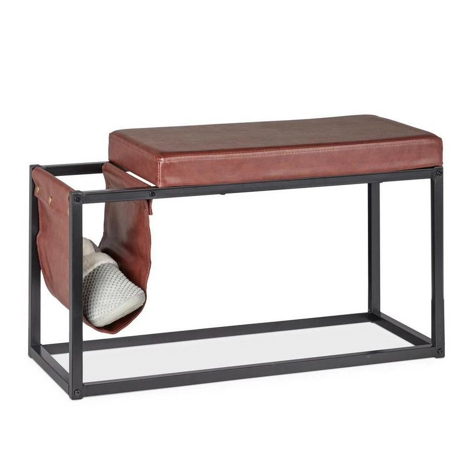 - Stylisch: Schuhbank im angesagten Industrial Look mit robustem Metallgestell und Bezug in Lederoptik
