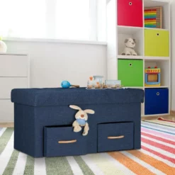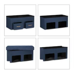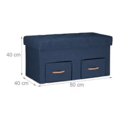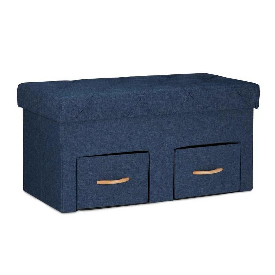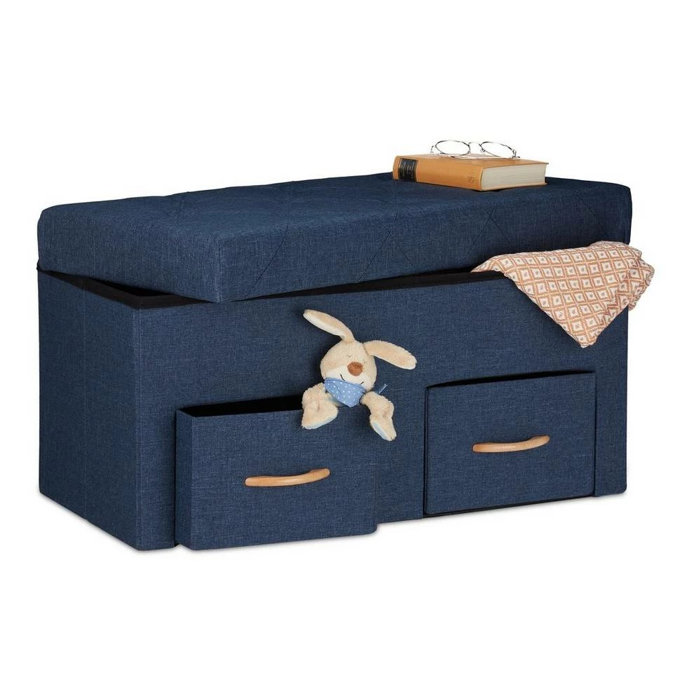Sitztruhe mit gepolsterter Sitzfläche Mit dieser Sitzbank holen Sie sich zusätzlichen Stauraum nach Hause. Mit 2 Schubladen und Trennfächern bietet die Aufbewahrungstruhe ausreichend Möglichkeiten, um für Ordnung zu sorgen. Der abnehmbare und weich gepolsterte Deckel kann als Sitzfläche genutzt werden. So haben Sie viel Platz um Kleidung, Schuhe, Spielzeug uvm. zu verstauen. Sollten Sie die Sitzkommode einmal nicht benötigen, lässt sich diese einfach und schnell in ihre Einzelteile zerlegen und verstauen.